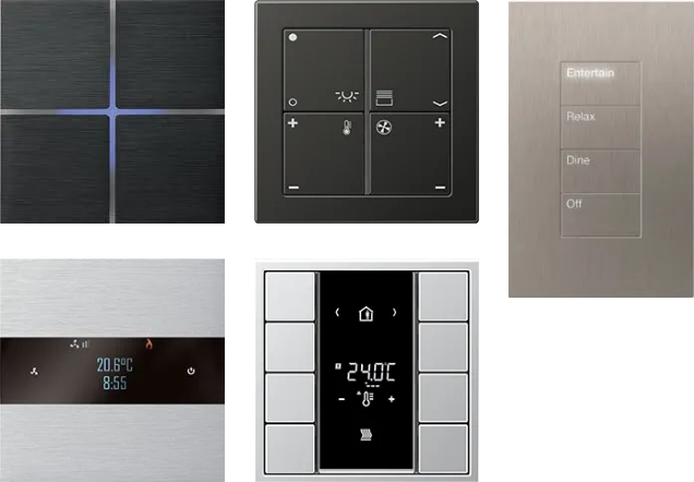 Le choix des commandes murales est primordial pour réaliser une installation domotique la plus simple et la plus ludique possible. Nous travaillons avec des fabricants qui nous donnent la possibilité de diminuer le nombre de boutons, ce qui nous permet de simplifier l’installation au maximum.